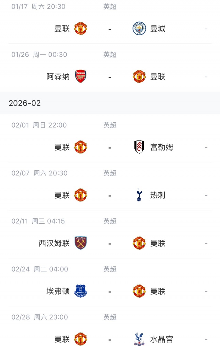 目前曼聯(lián)在英超8勝8平5負(fù)積32分,排名第7,球隊(duì)本賽季已經(jīng)沒(méi)有杯賽任務(wù),下一場(chǎng)比賽曼聯(lián)將在周六主場(chǎng)迎戰(zhàn)曼城。
